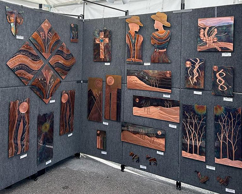Copper changes color with heat. Steve and Calisse Browne use an open flame